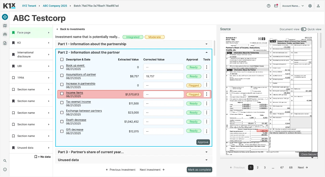 - Parsing K-1s: Smart K-1 document separation for fed, state, international.